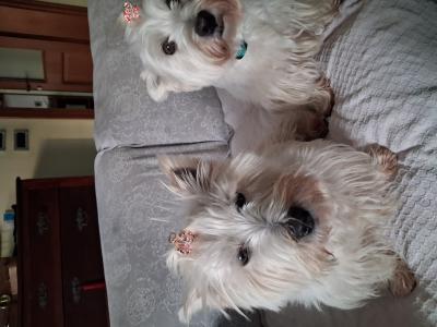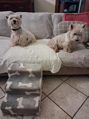 Siamo arrivate grandicelle dai nostri nuovi tati...un po' strani direi. Non possiamo dire come eravamo abituate ma ora questi, ci fanno salire sul divano, ci prendono spesso in braccio, ci danno il premietto dopo l'ultima uscita la sera (tardi!!! dopo la fine dei films...)