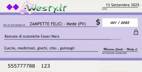 Grazie a tutti voi, questi canili hanno ricevuto l'assegno di supporto di "Missione Canili". Grazie!