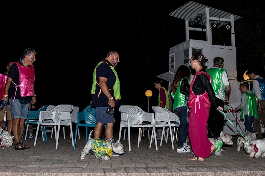 Divisi a squadre di quattro colori, con pettorine e bandane per identificarci, ci siamo divertiti con giochi per pelosetti e per tati: dalla pallavolo, al "pesa il tuo westy", alla gara in pedalò...