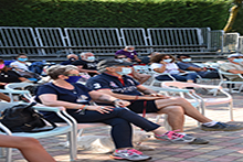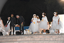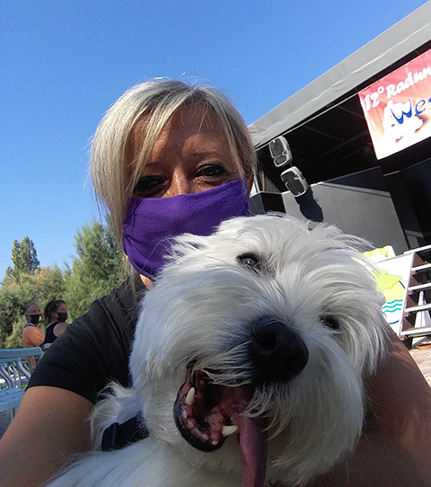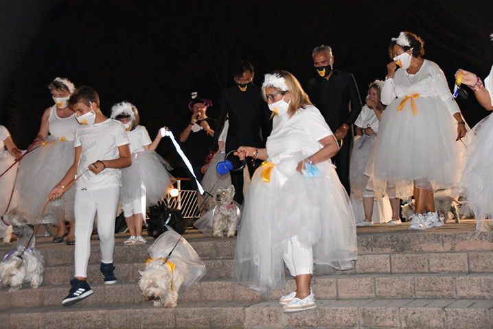 Tutti con la mascherina alzata e cercando di mantenere un minimo di distanziamento tra nuclei familiari diversi, saliamo tutti sul palco e al suono di UN DUE TREEEEE... solleviamo i nostri westyni verso l'alto.
