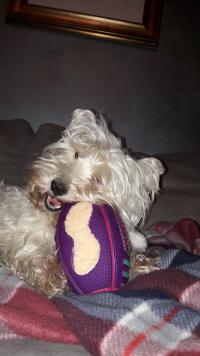 Sono una cagnolina molto affettuosa e dolce, anche se a volte sono testarda e ribelle. Mi piace giocare con ogni tipo di oggetto fino a quando riesco a romperlo... sono un piccolo uragano!